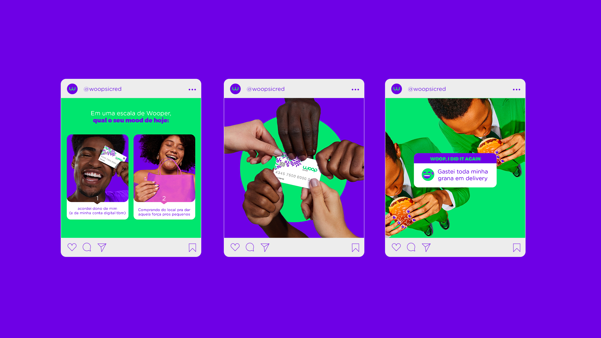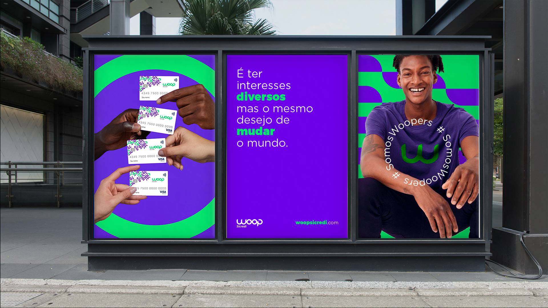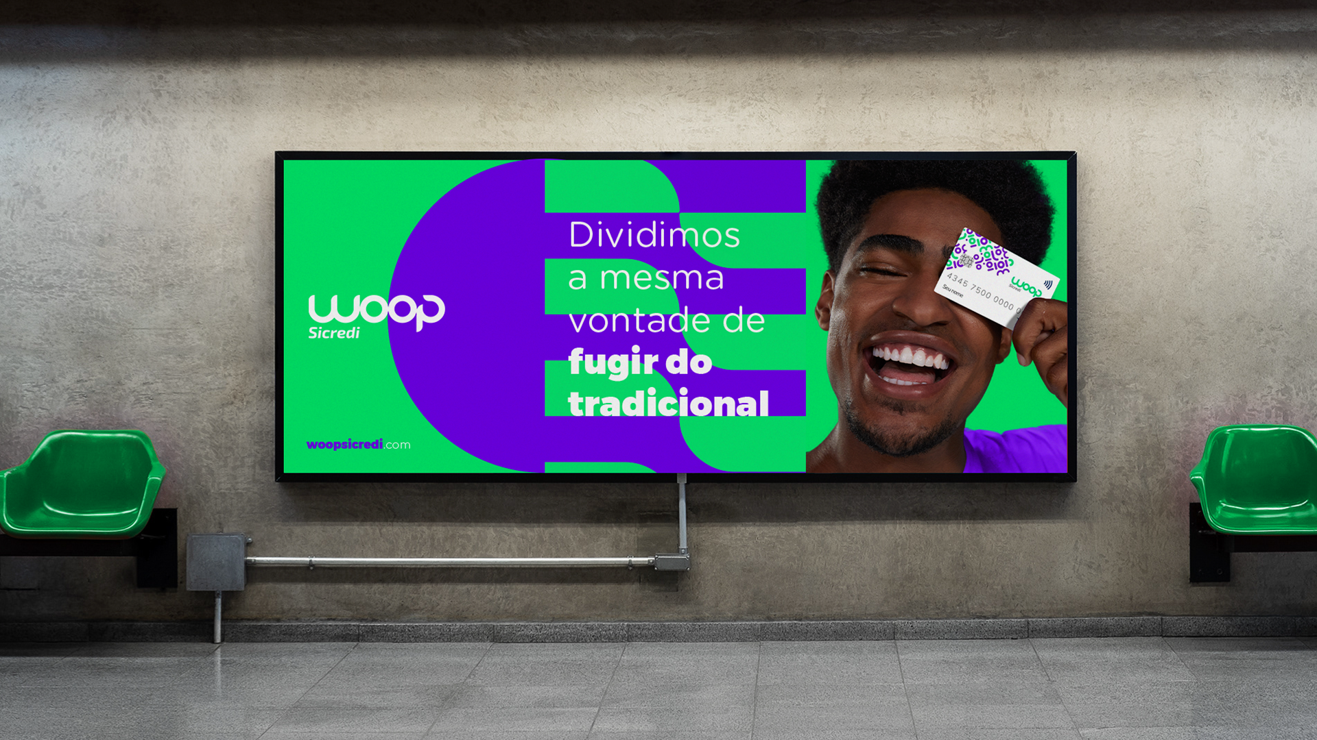 Woop Sicredi is part of the Sicredi group, but it speaks to a completely different audience. Here, the challenge was to create an institutional campaign aimed at young people, with the goal of standing out and gaining more space among other digital banking brands.